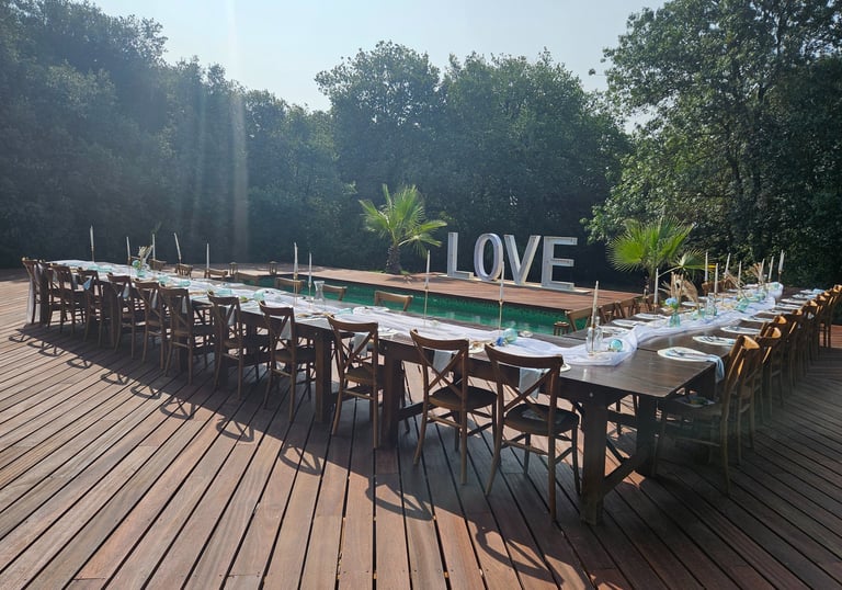 Découvrez nos gîtes avec piscines, services pour mariages et baptêmes intimistes.