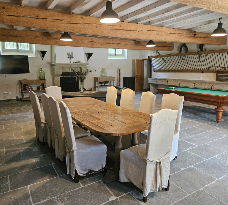 Le gîte Écurie peut accueillir jusqu'à 8 personnes. Profitez de votre propre piscine et d'un cadre paisible sur notre domaine de 8 hectares. Repas sur commande disponibles.